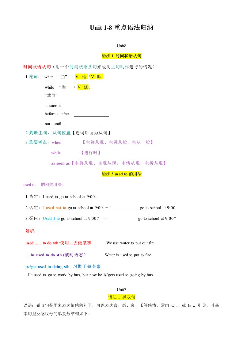 七下英语专题02 Unit 1-8重点语法归纳(沪教牛津)(含答案)QXYYHJ-0250