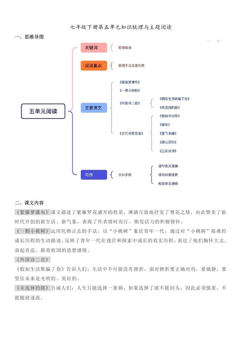 七年级下册第五单元知识梳理与主题阅读(学生版)(教师版)QXYWBB-0196