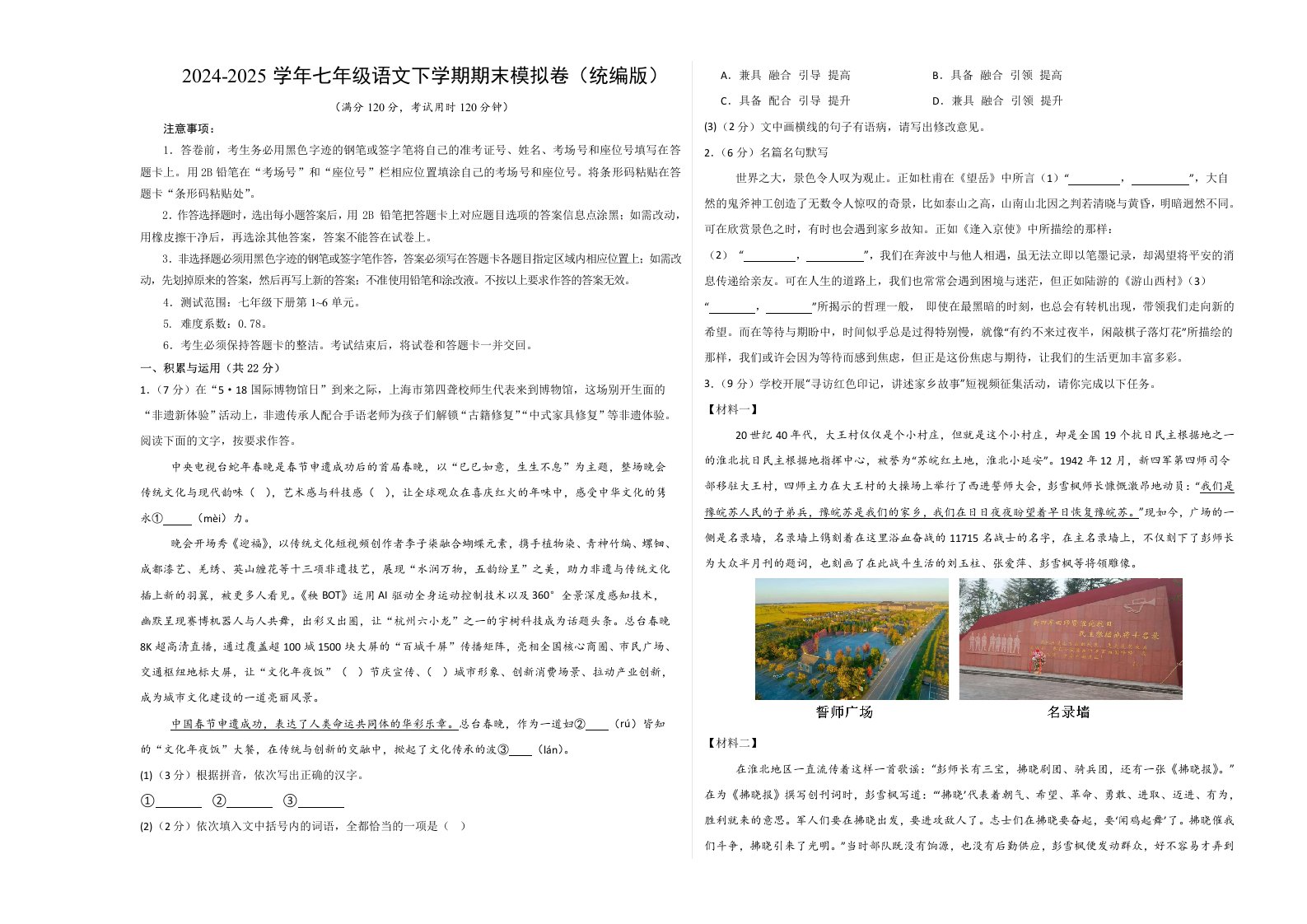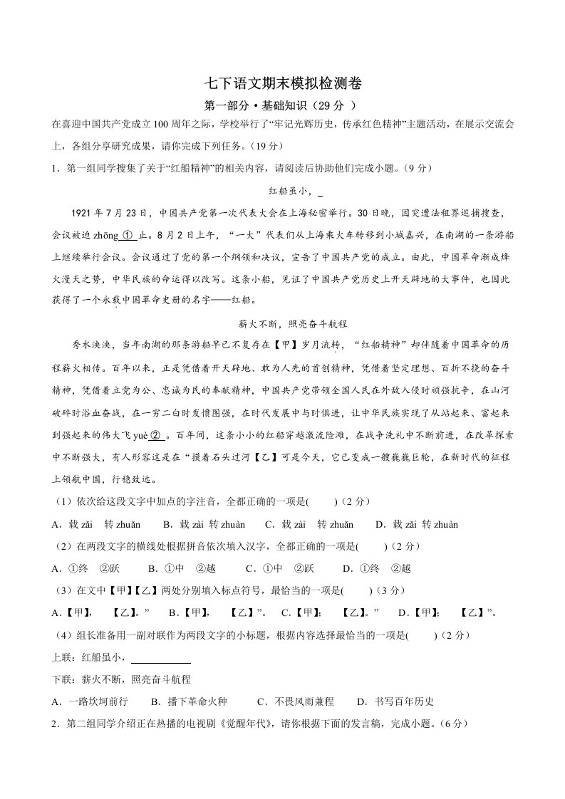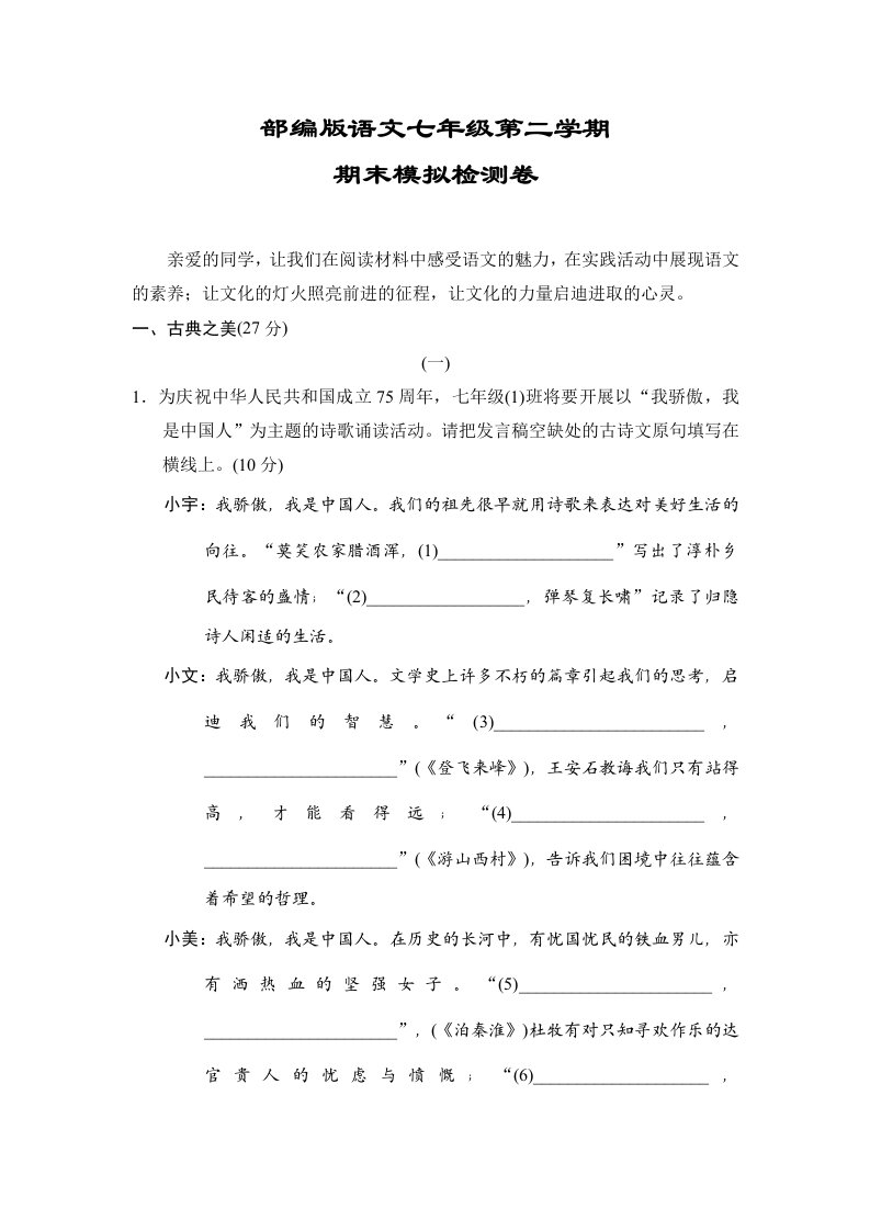 期末模拟检测卷-统编版语文七年级下册(含答案)QXYWBB-0248