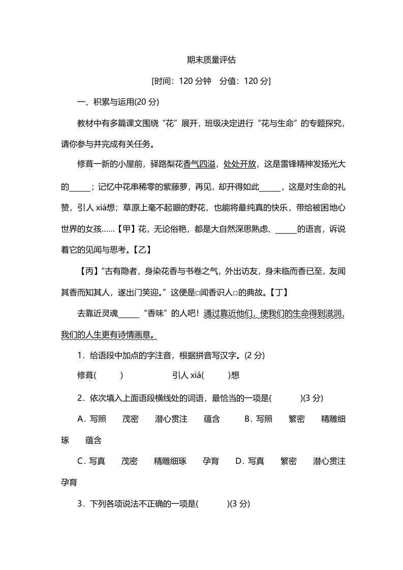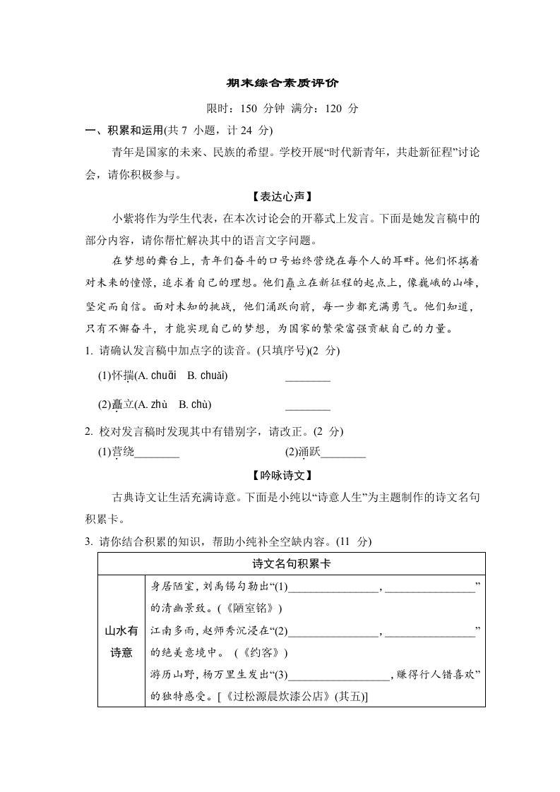 期末综合素质评价 统编版语文七年级下册(含答案)QXYWBB-0255