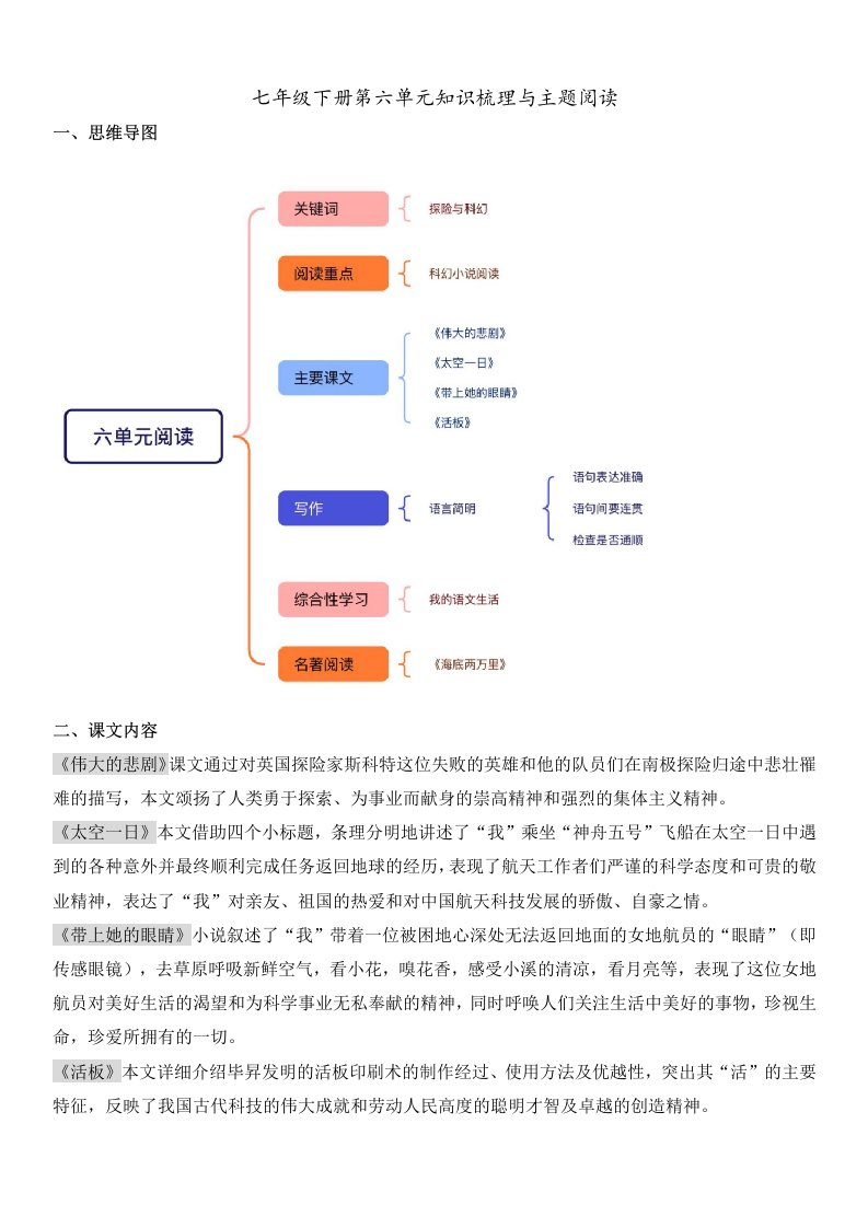 七年级下册第六单元知识梳理与主题阅读(学生版)(教师版)QXYWBB-0198