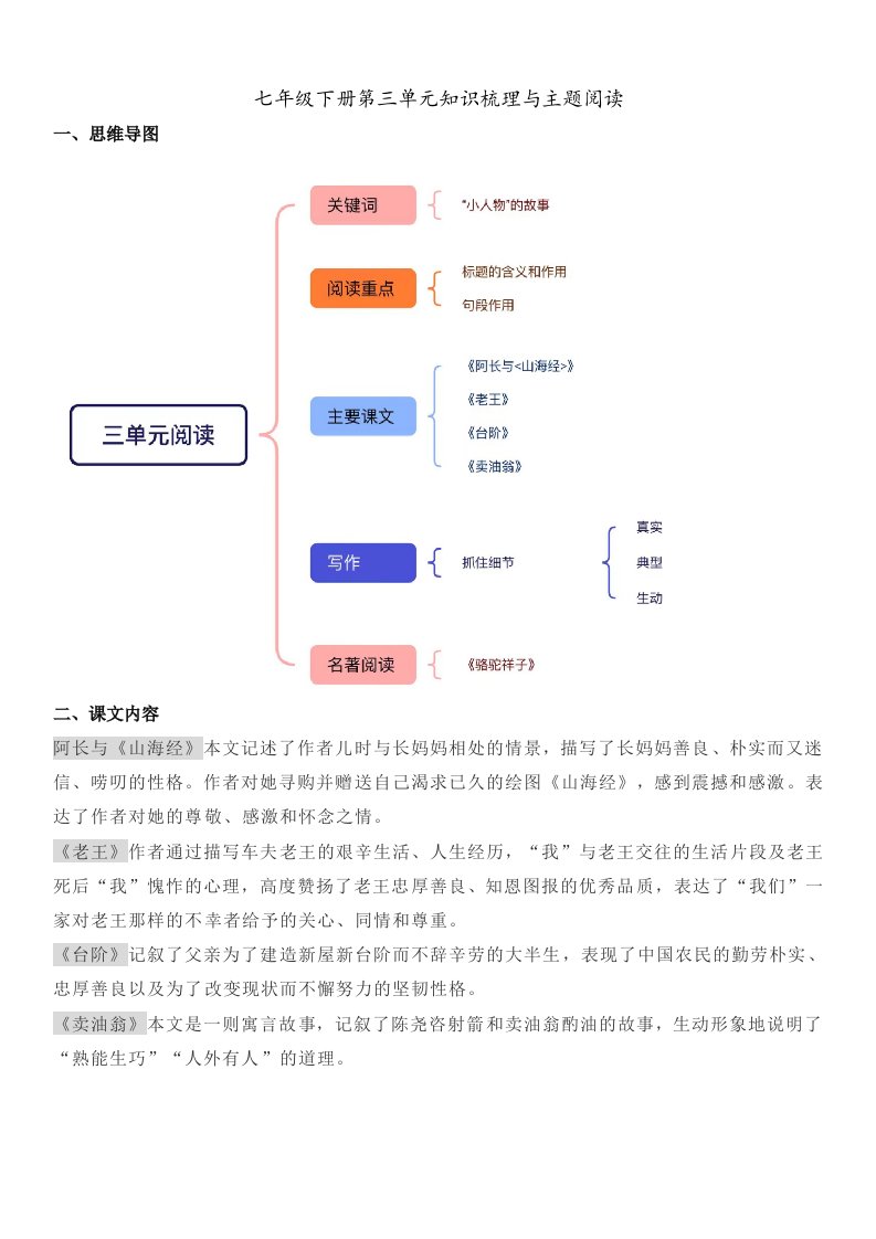 七年级下册第三单元知识梳理与主题阅读(学生版)(教师版)QXYWBB-0192