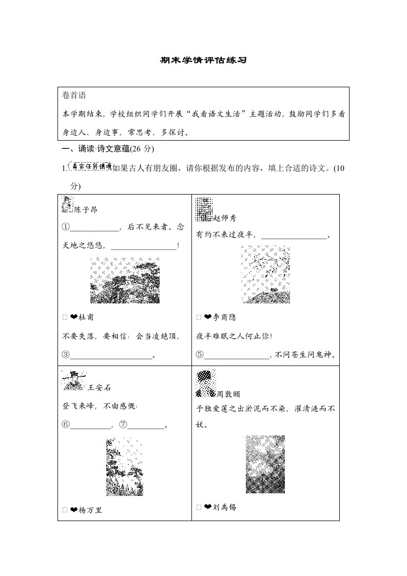 期末学情评估练习 统编版语文七年级下册(含答案)QXYWBB-0247