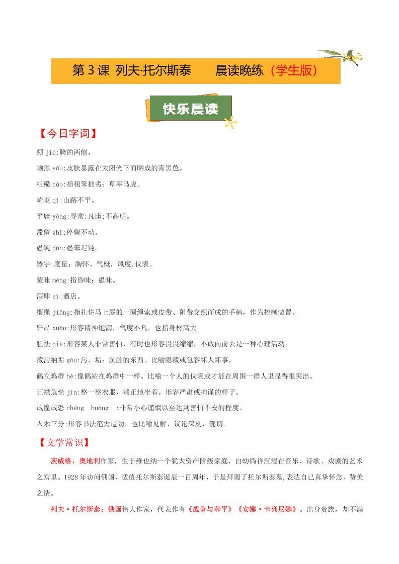 第3课《列夫·托尔斯泰》(学生版)(教师版)QXYWBB-0080