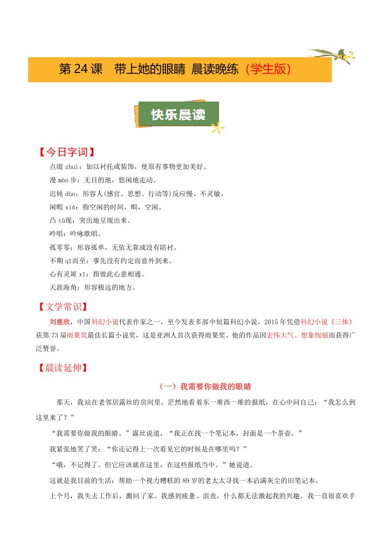 第24课《带上她的眼睛》(学生版)(教师版)QXYWBB-0074