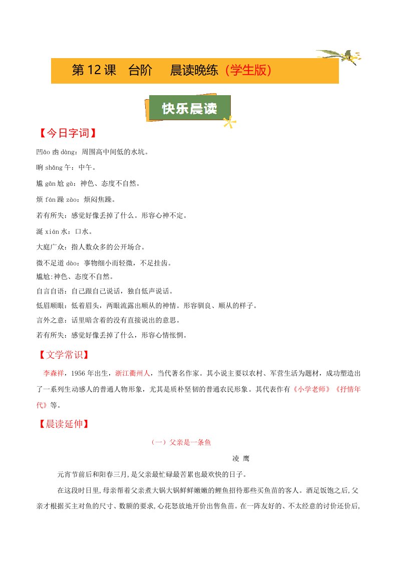 第12课《台阶》(学生版)(教师版)QXYWBB-0046