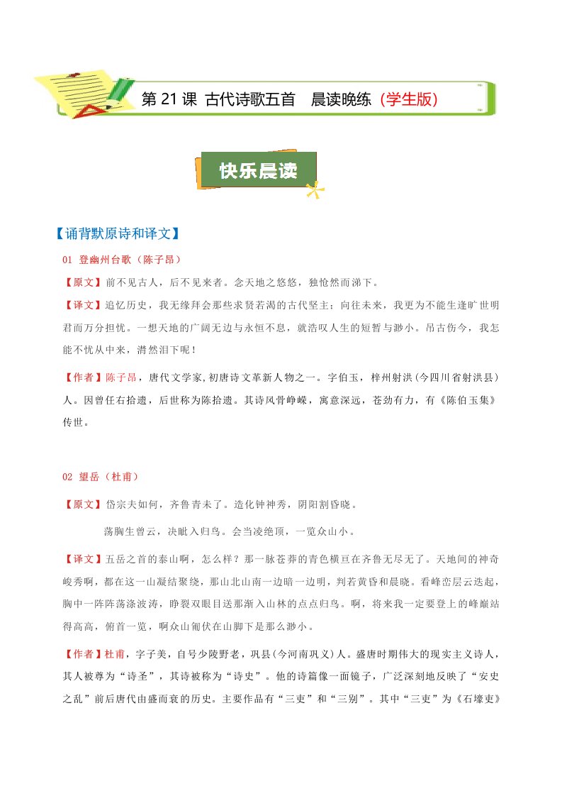 第21课 《古代诗歌五首》(学生版)(教师版)QXYWBB-0068