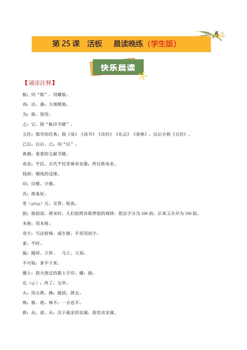 第25课《活板》(学生版)(教师版)QXYWBB-0076