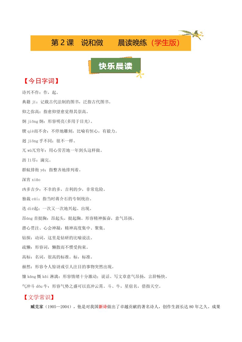 第2课《说和做》(学生版)(教师版)QXYWBB-0078