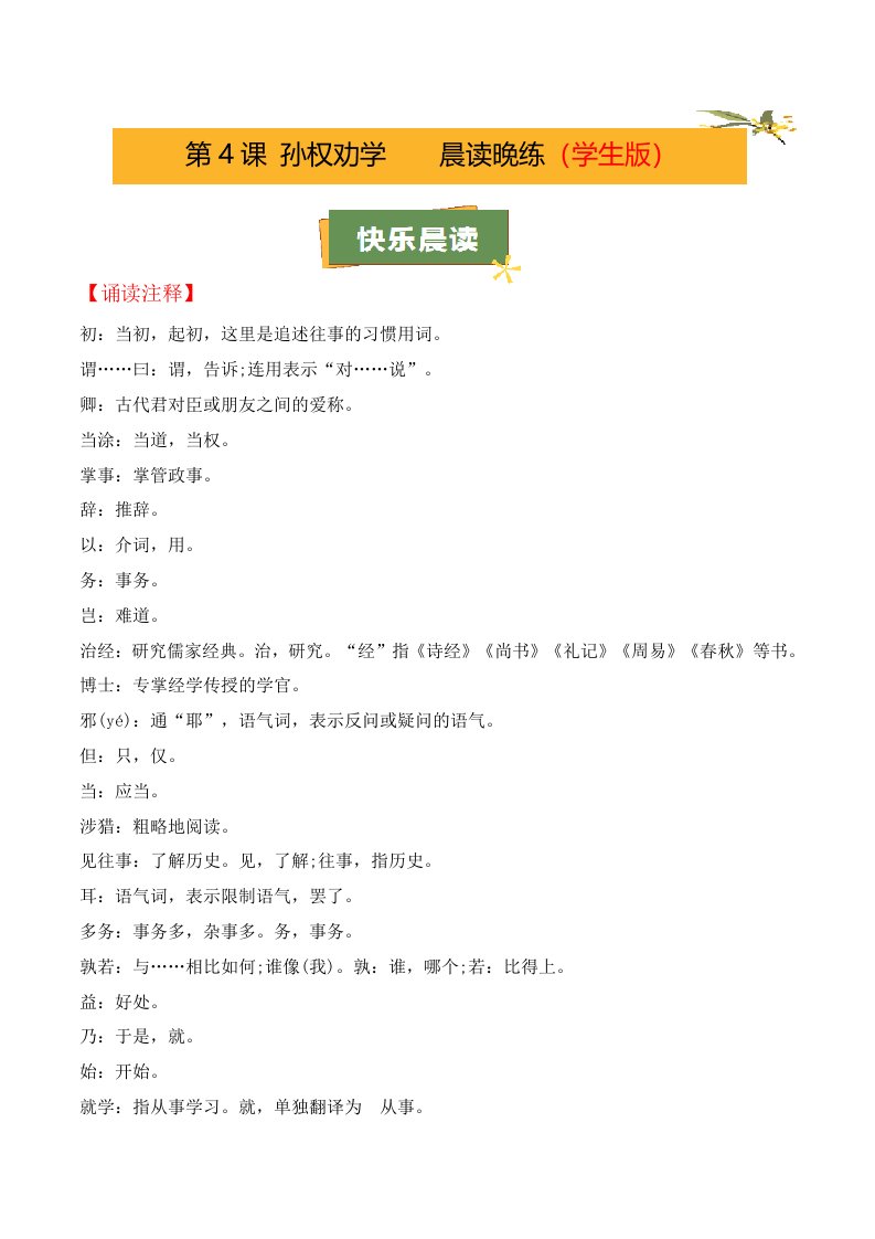第4课《孙权劝学》(学生版)(教师版)QXYWBB-0082