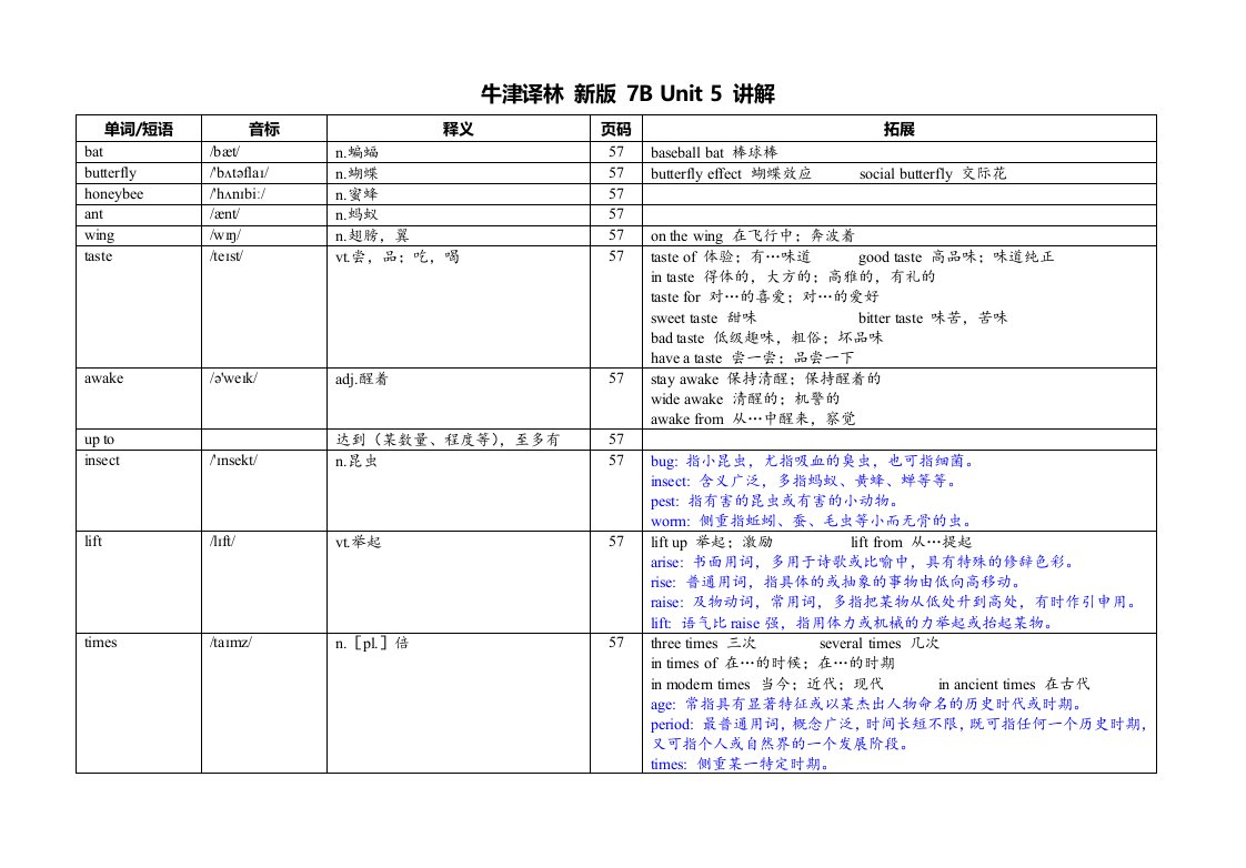 Unit 5 词汇表讲解译林版英语七年级下册QXYYYL-0052