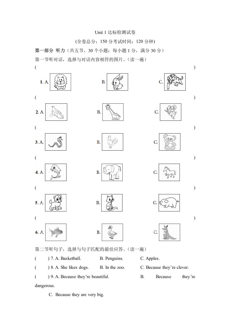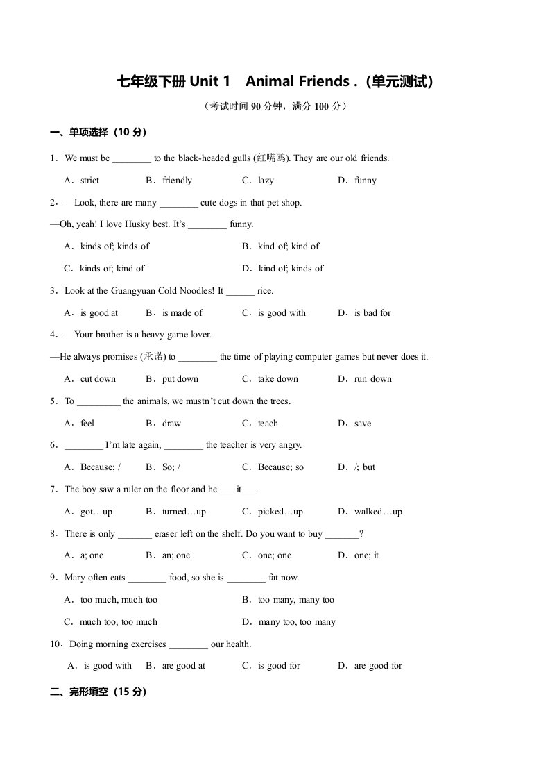 七下英语 Unit 1 Animal friends .(单元测试)(含答案)QXYYRJ-0188