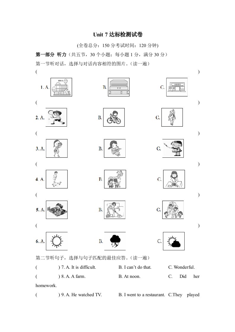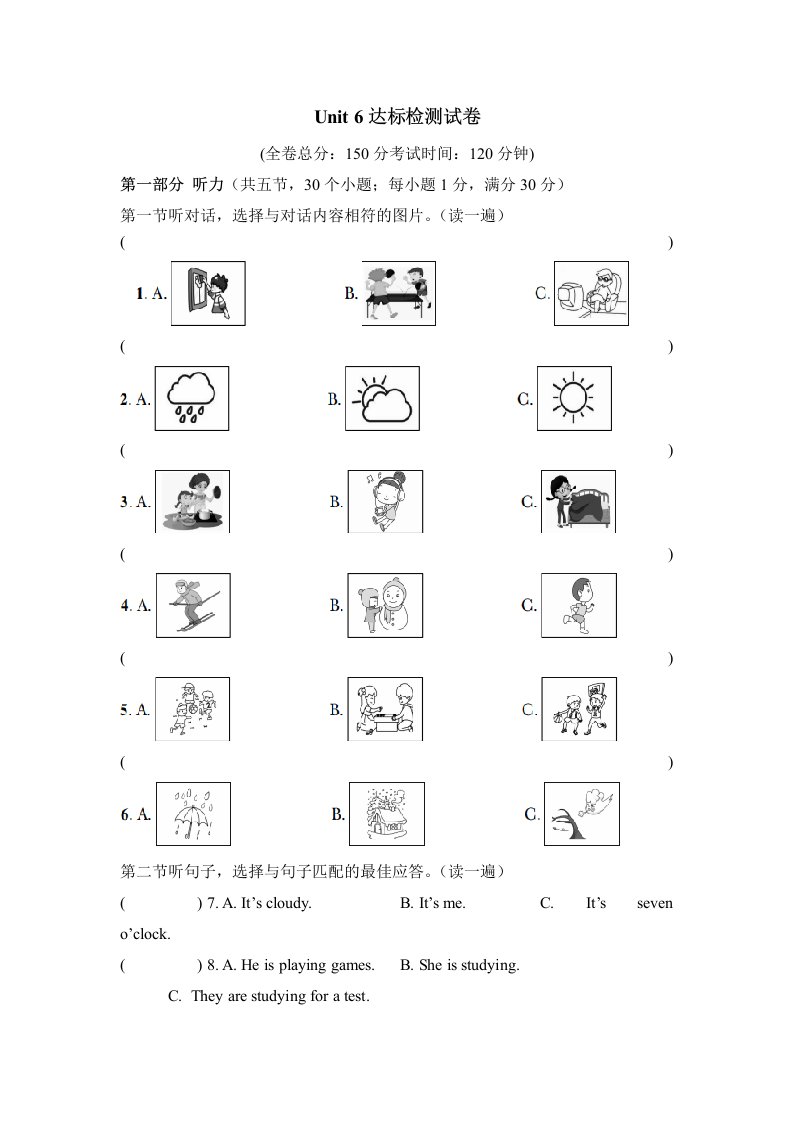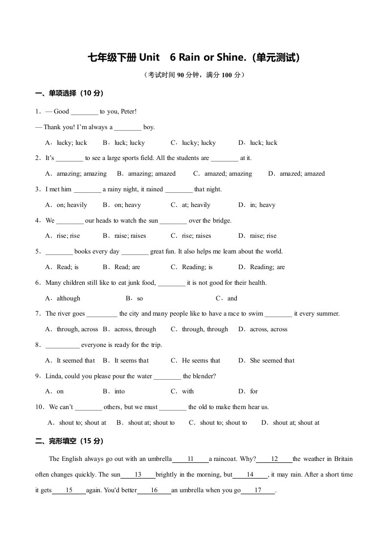 七下英语 Unit 6 Rain or Shine. (单元测试)(含答案)QXYYRJ-0203