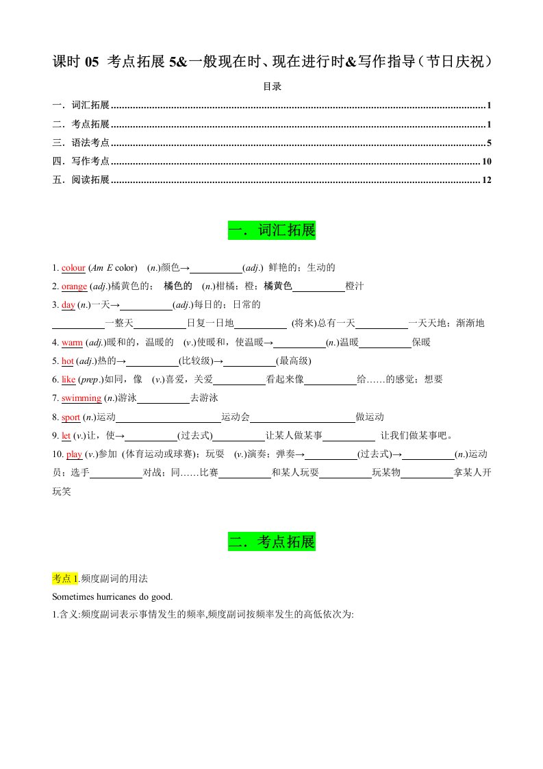 七下英语专题05 考点拓展5&一般现在时、现在进行时&写作指导(节日庆祝)(含答案)QXYYRJ-0307