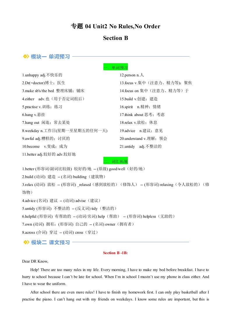 七下英语专题04 Unit2 No Rules,No Order Section B(含答案)QXYYRJ-0298