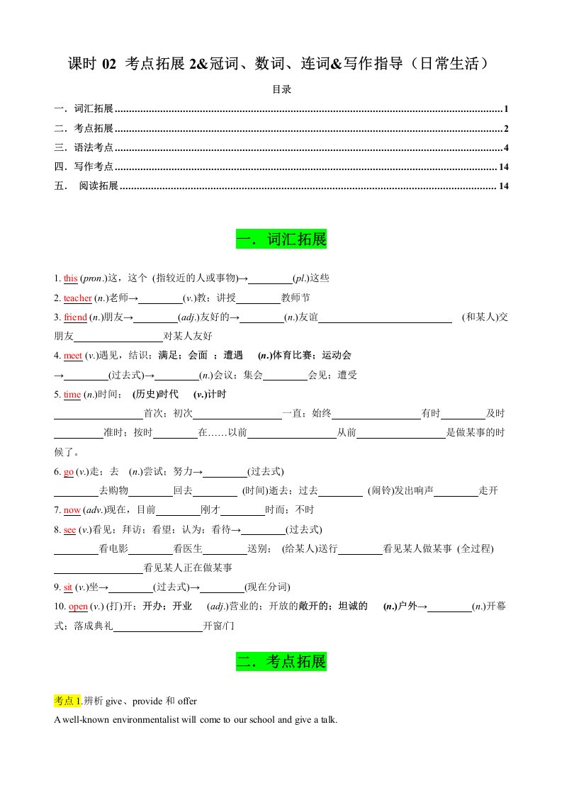 七下英语专题02 考点拓展2&冠词、数词、连词&写作指导(日常生活)(含答案)QXYYRJ-0289