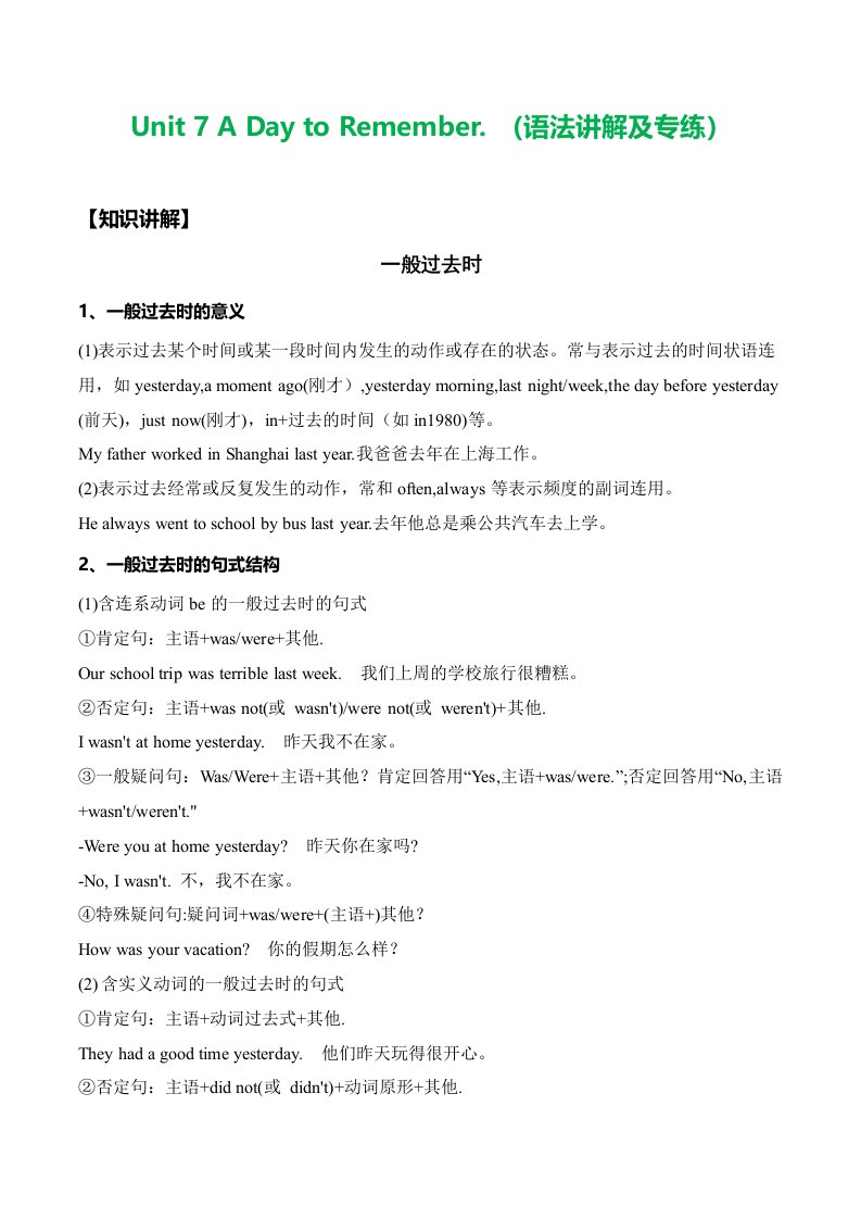 七下英语 Unit 7 A Day to Remember .(语法讲解及专练)(含答案)QXYYRJ-0173