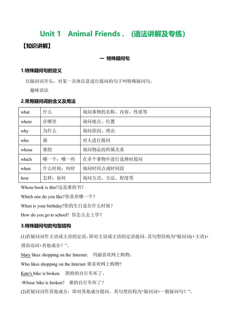 七下英语 Unit 1 Animal friends .(语法讲解及专练)(含答案)QXYYRJ-0161