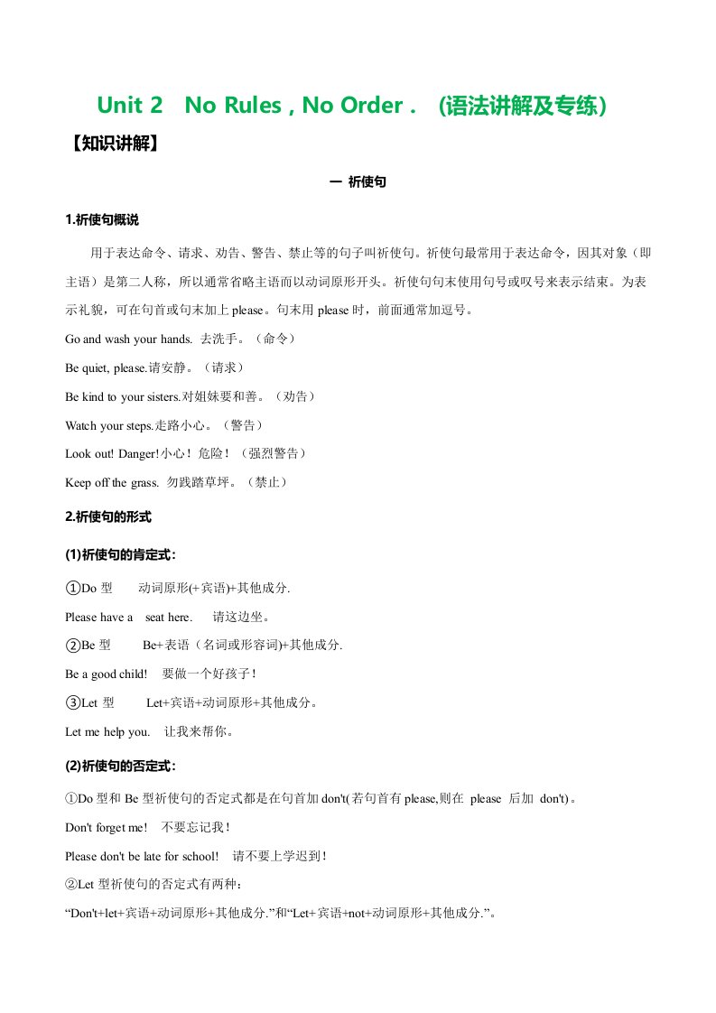七下英语 Unit 2 No Rules , No Order .(语法讲解及专练)(含答案)QXYYRJ-0163