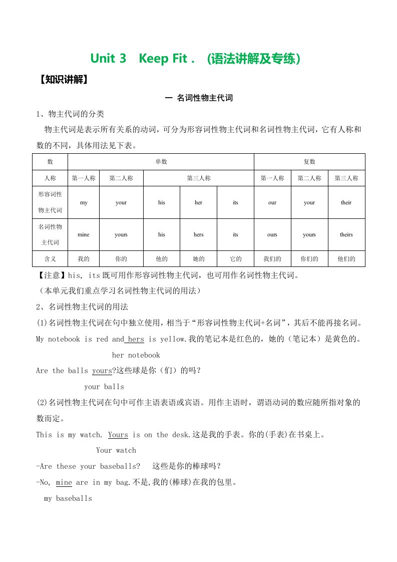 七下英语 Unit 3 Keep Fit .(语法讲解及专练)(含答案)QXYYRJ-0165