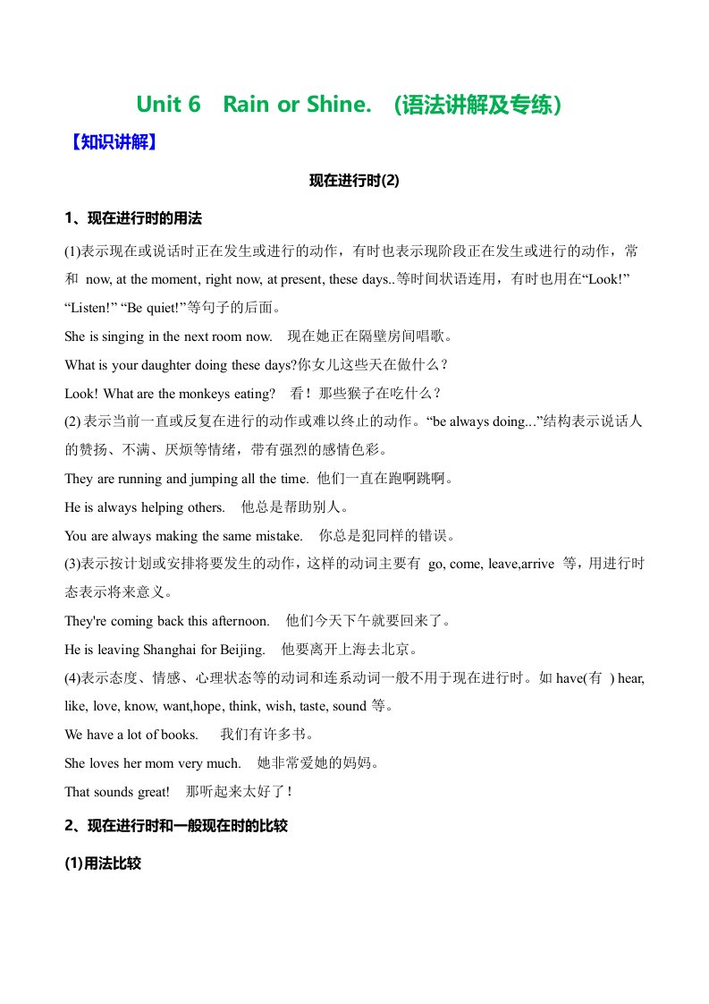 七下英语 Unit 6 Rain or Shine.(语法讲解及专练)(含答案)QXYYRJ-0171