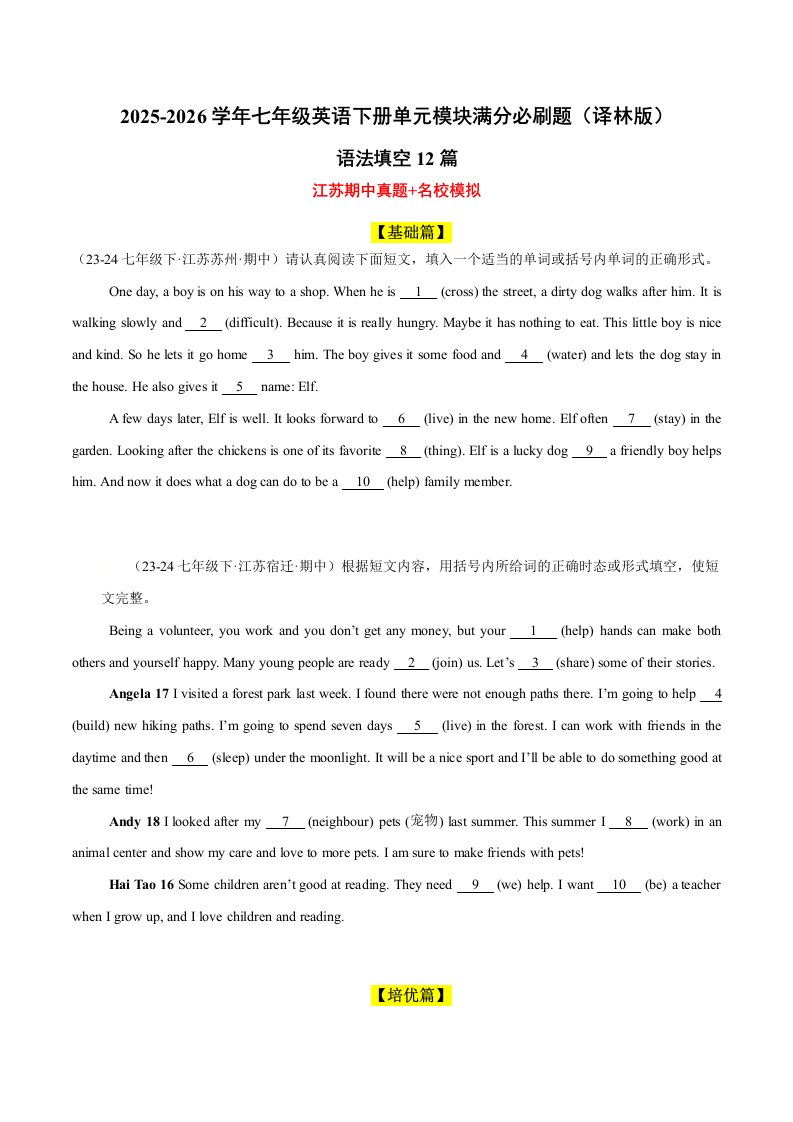七下英语 语法填空12篇-(译林版)(含答案)QXYYYL-0504