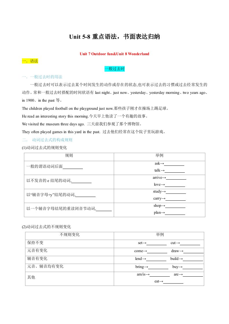 七下英语译林 考点清单05 Unit 5-8重点语法,书面表达归纳(含答案)