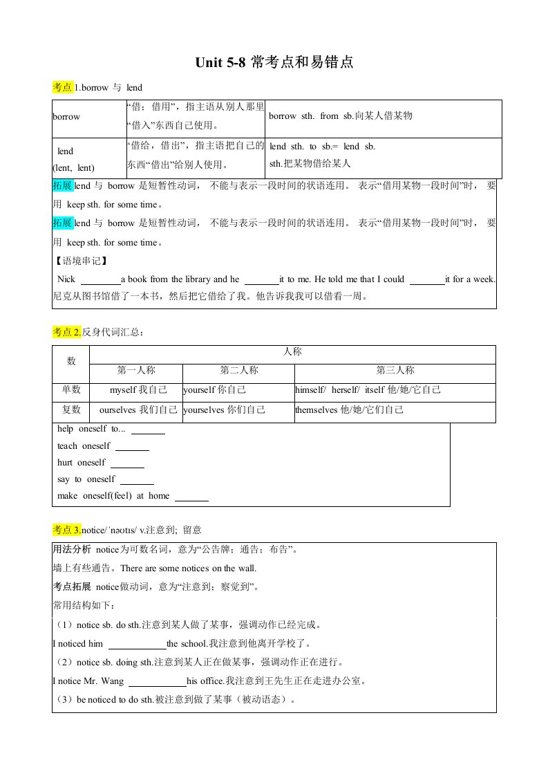 七下英语译林 考点清单06 Unit 5-8常考点和易错点(含答案)