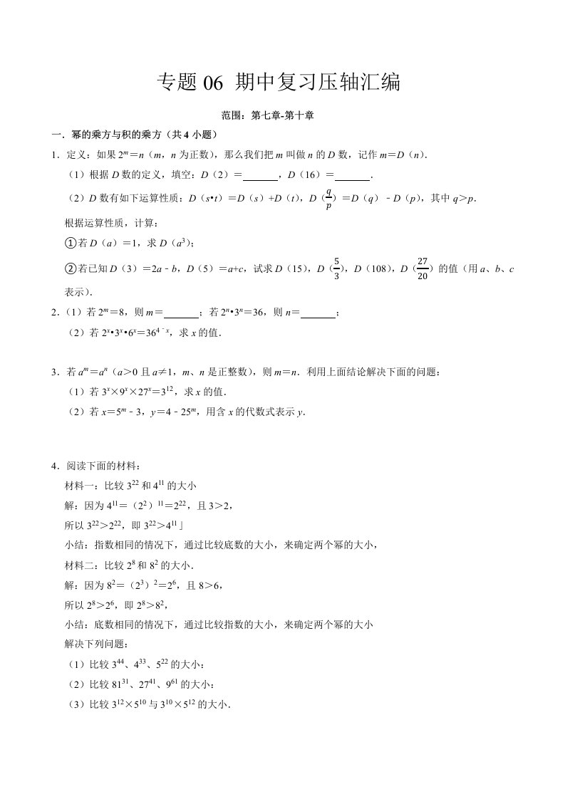 七下数学苏科 专题01 幂运算六大压轴类型(含答案)QXSXSK-0152