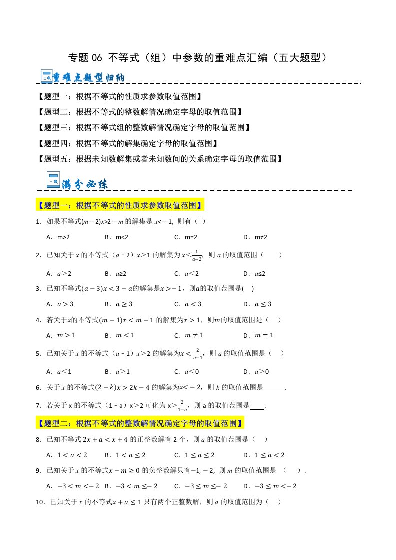 七下数学苏科 专题06 不等式(组)中参数的重难点汇编(五大题型)(含答案)QXSXSK-0147