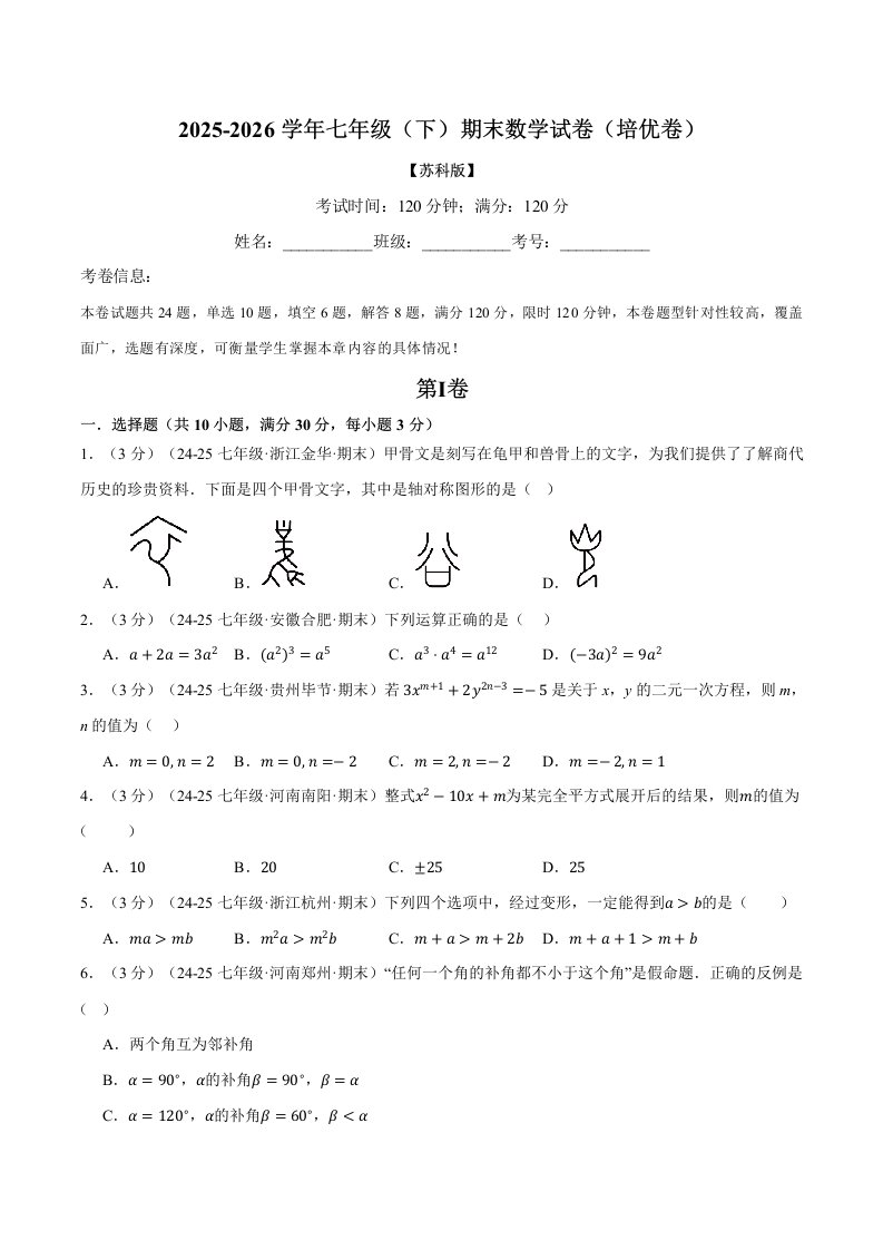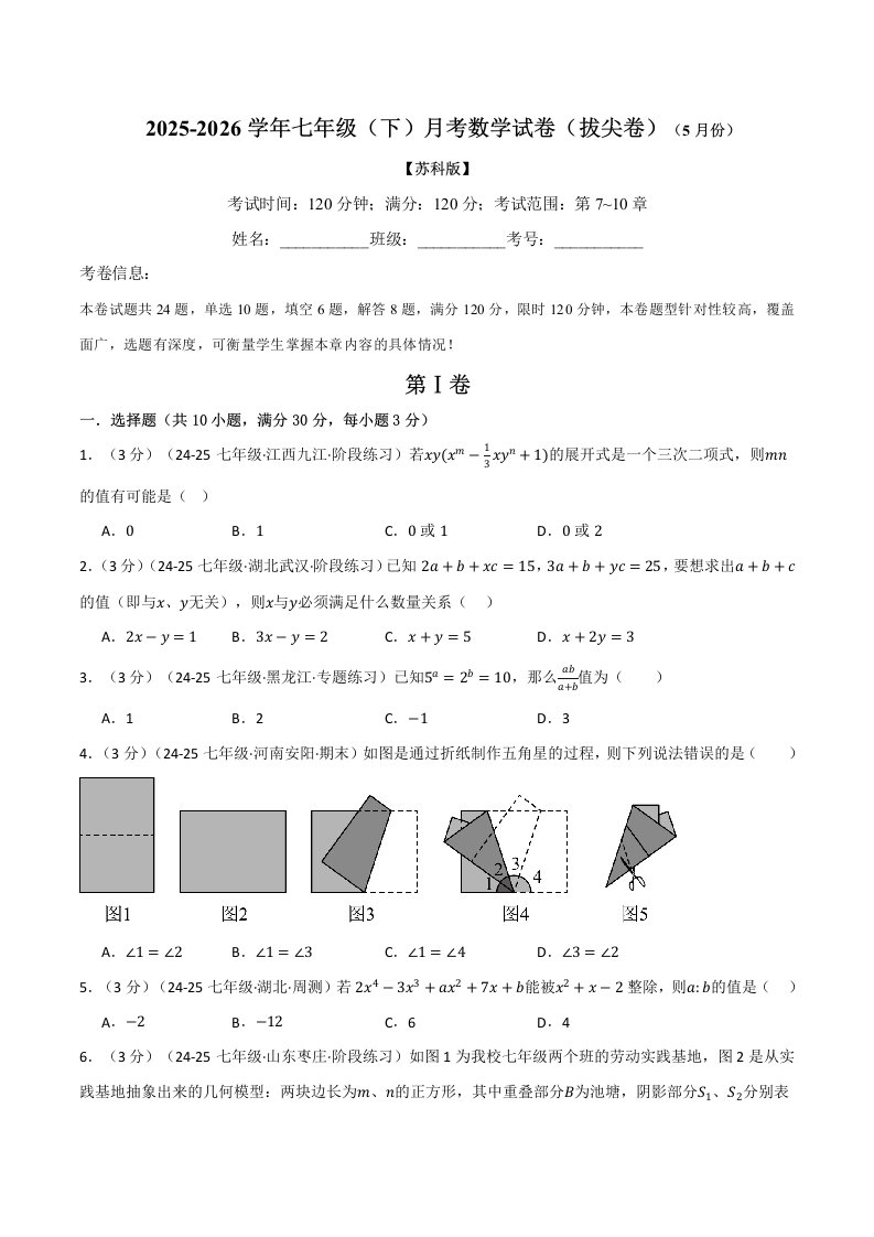 七下数学苏科 专题06 期中复习压轴汇编(十四大题型)(含答案)QXSXSK-0162