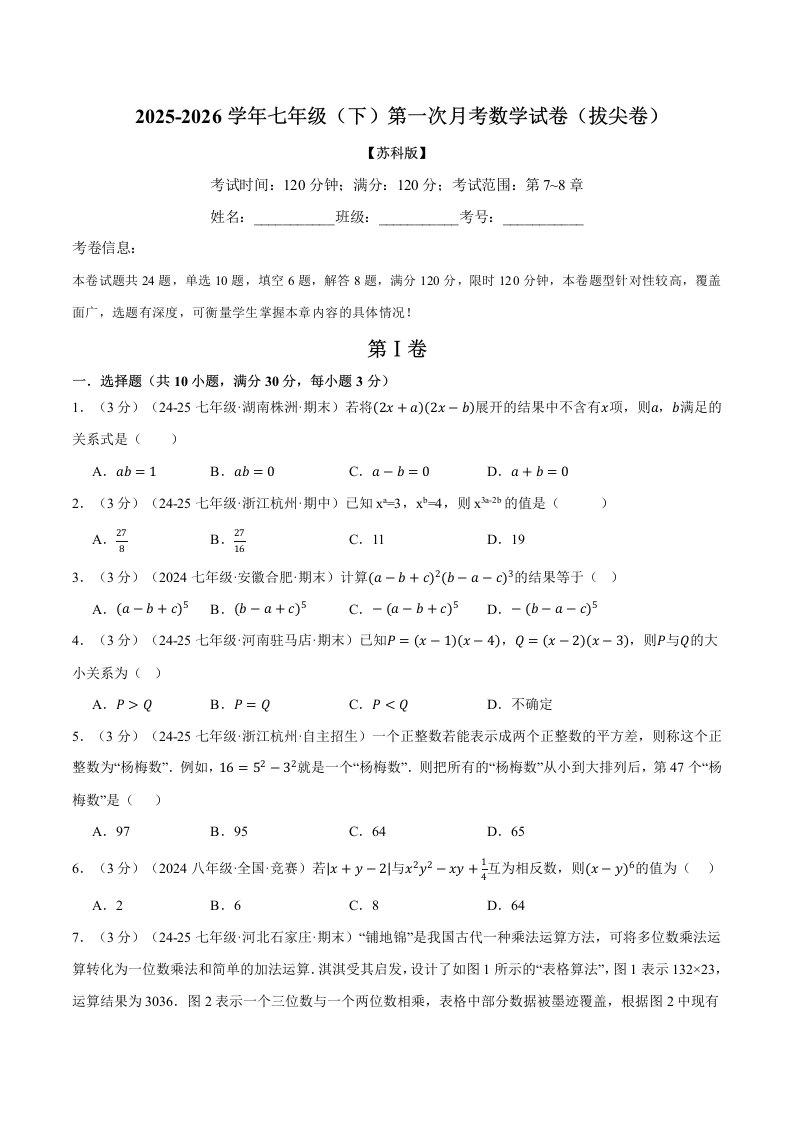 七下数学苏科 专题02 整式的乘法四大压轴类型(含答案)QXSXSK-0154
