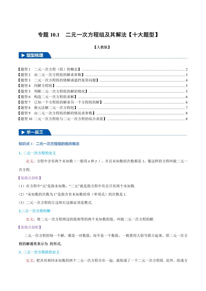 七下数学专题10.1 二元一次方程组及其解法(十大题型)(人教版)(含答案)QXSXRJ-0066