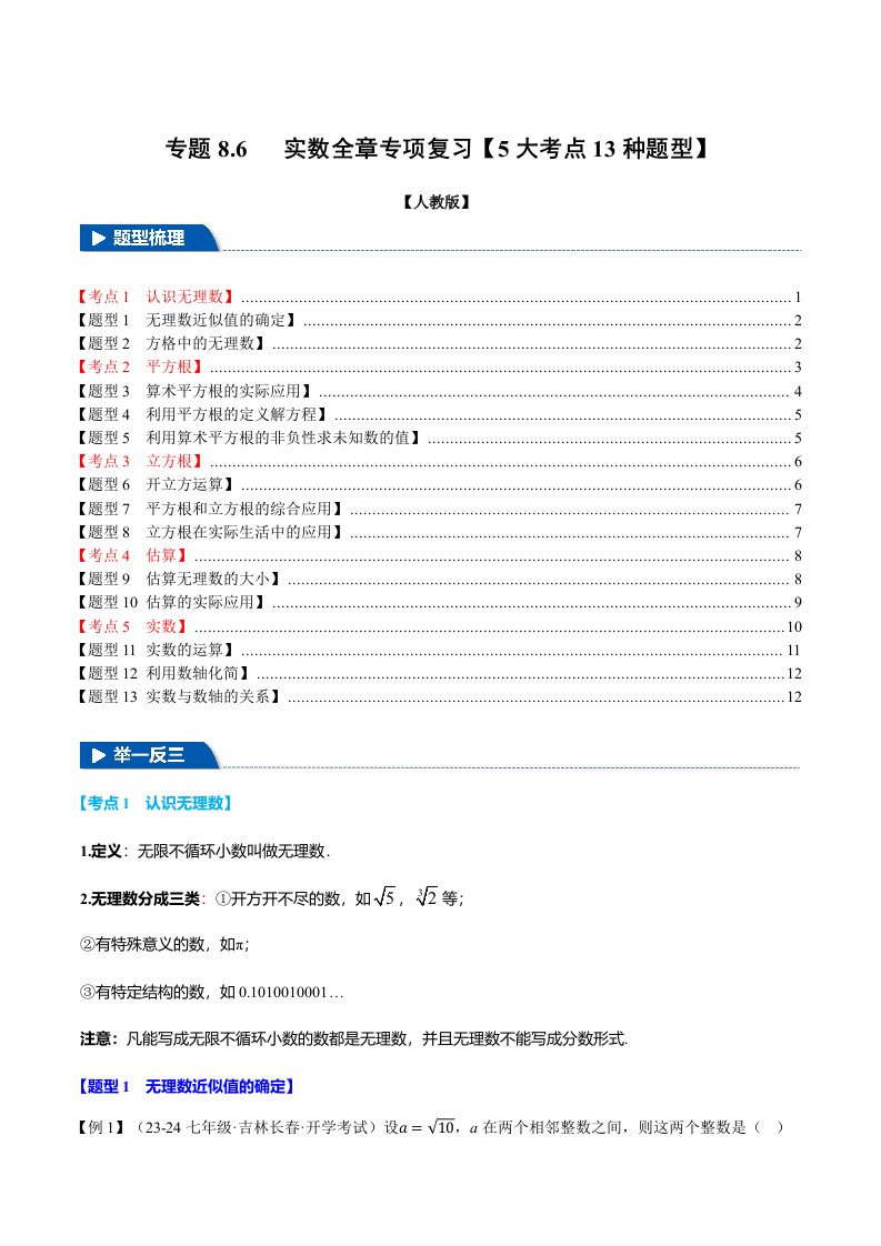 七下数学专题8.6 实数全章专项复习(5大考点13种题型)(人教版)(含答案)QXSXRJ-0132