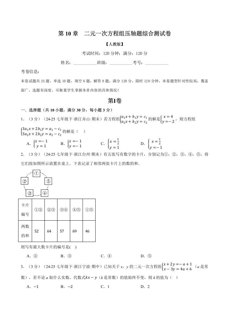 七下数学专题10.8 二元一次方程组压轴题综合测试卷(人教版)(含答案)QXSXRJ-0080