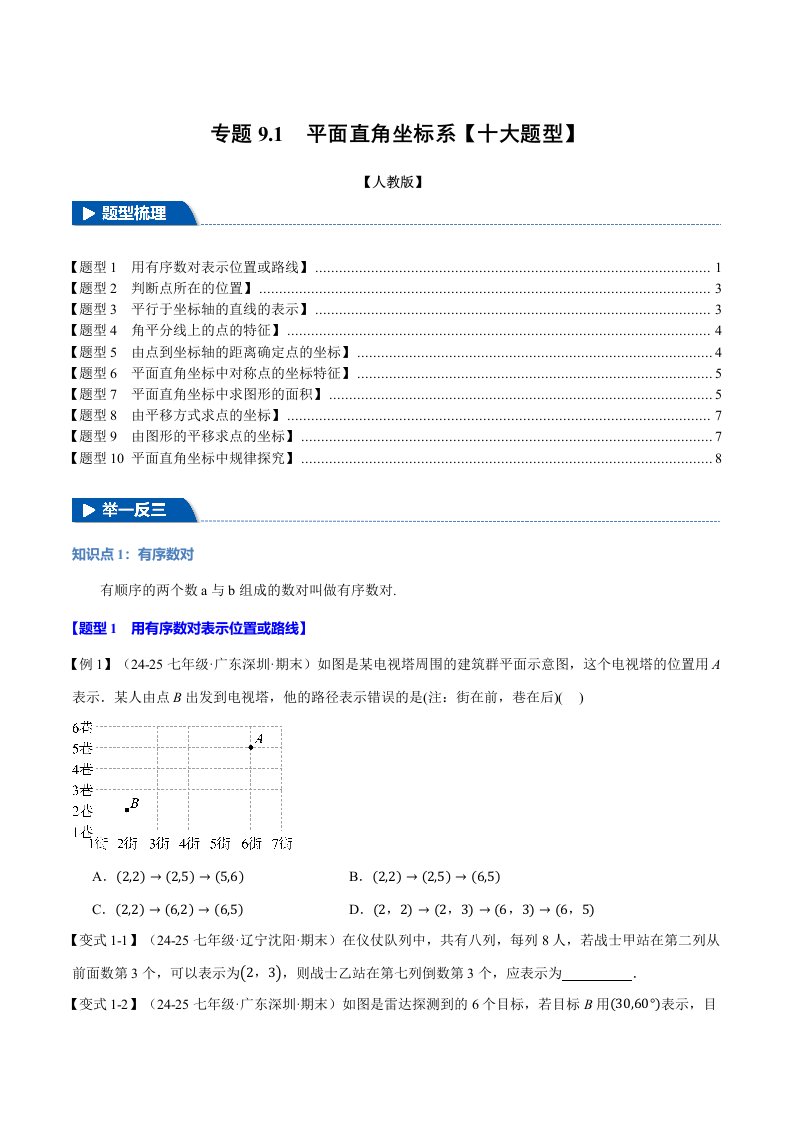 七下数学 专题9.1 平面直角坐标系(十大题型)(人教版)(含答案)QXSXRJ-0136