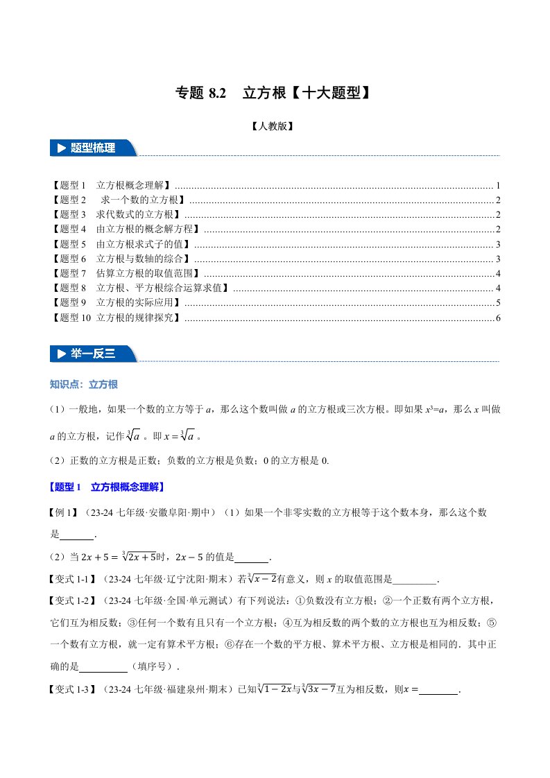七下数学 专题8.2 立方根(十大题型)(人教版)(含答案)QXSXRJ-0124