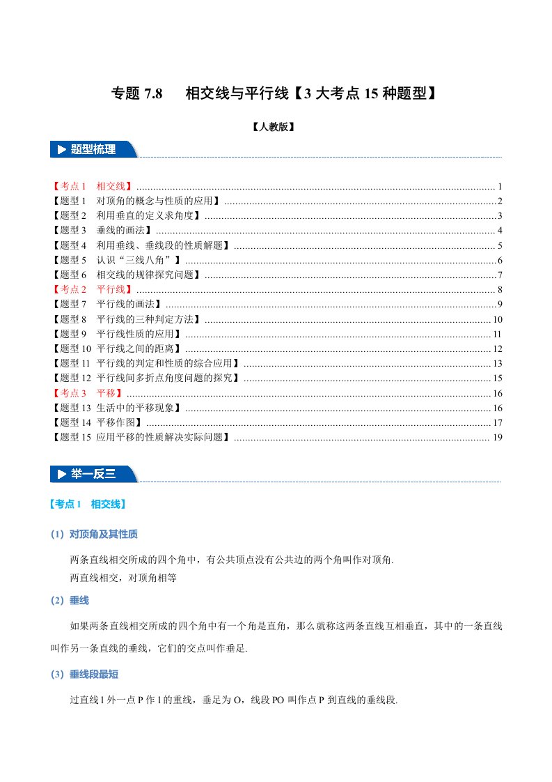 七下数学 专题7.8 相交线与平行线全章专项复习(3大考点15种题型)(人教版)(含答案)QXSXRJ-0118
