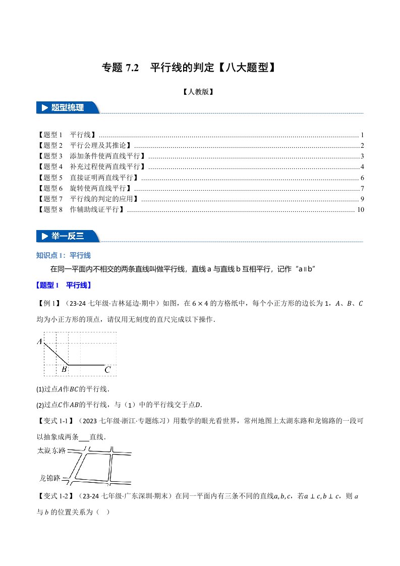 七下数学 专题7.2 平行线的判定(八大题型)(人教版)(含答案)QXSXRJ-0106