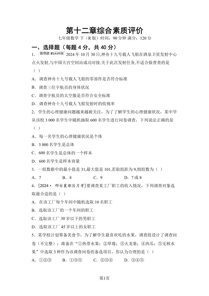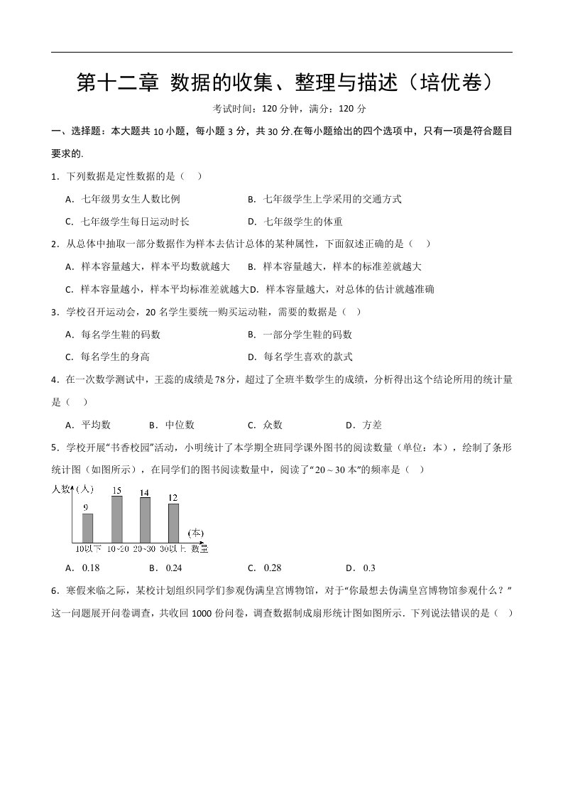 七下数学 第十二章 数据的收集、整理与描述(人教版)(含答案)QXSXRJ-0034
