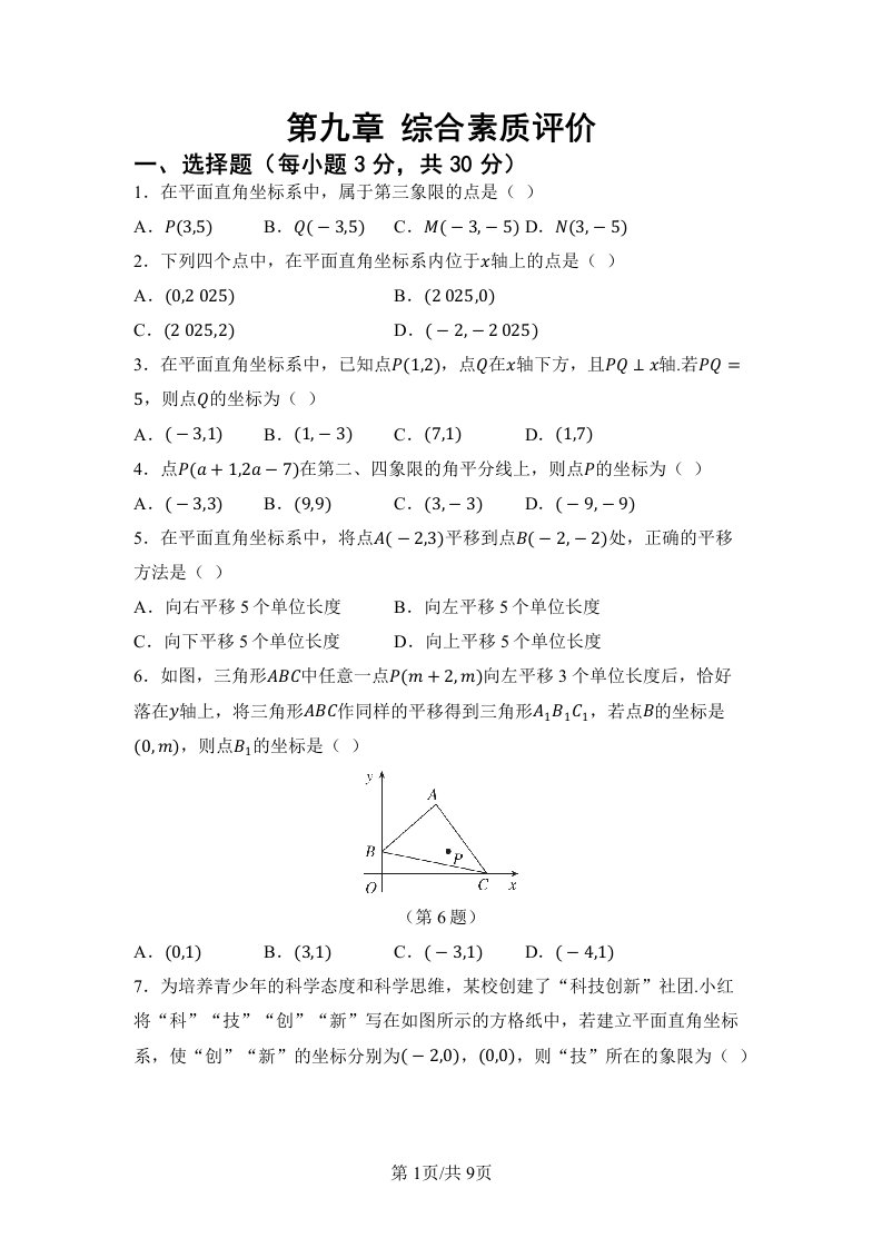 七下数学-第九章综合素质评价(含答案)QXSXRJ-0020