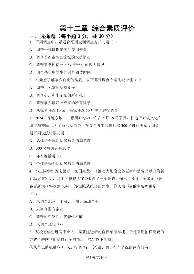 七下数学-第十章综合素质评价(含答案)QXSXRJ-0021