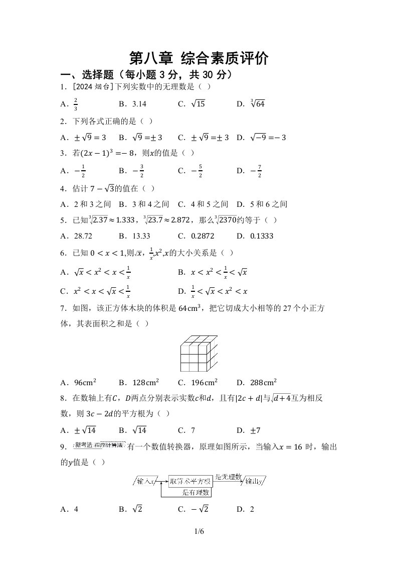 七下数学-第八章综合素质评价(含答案)QXSXRJ-0019