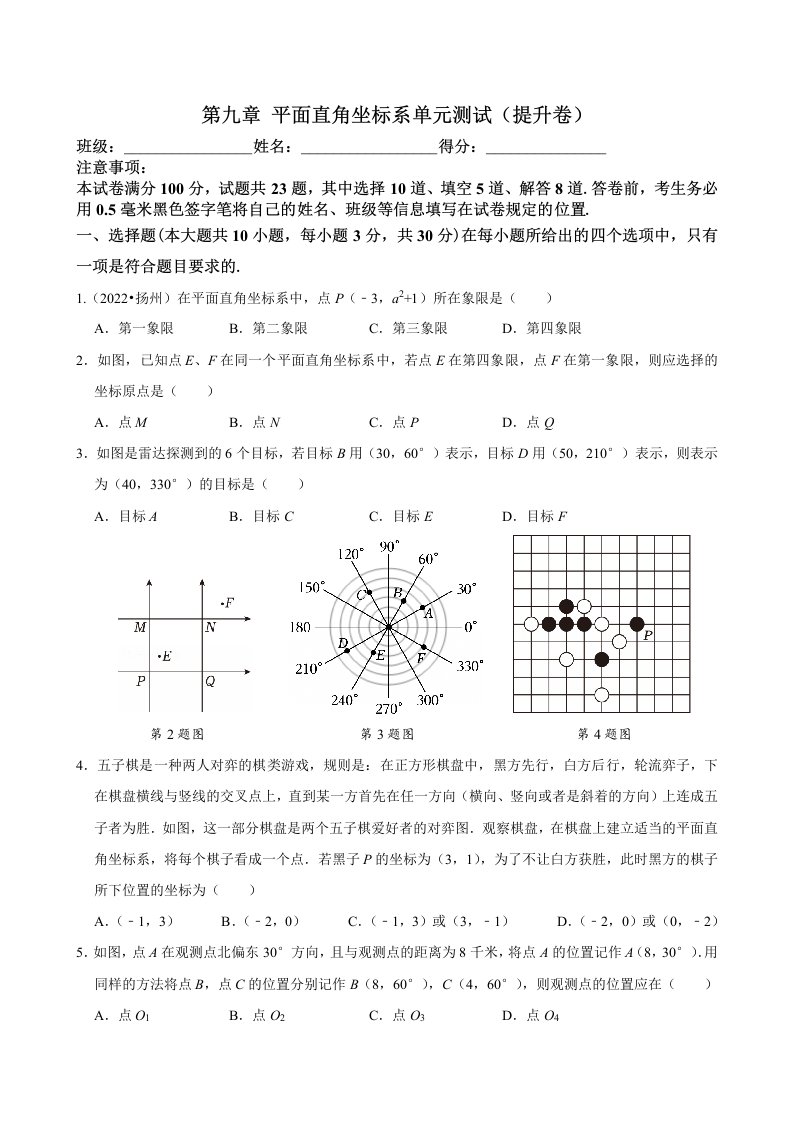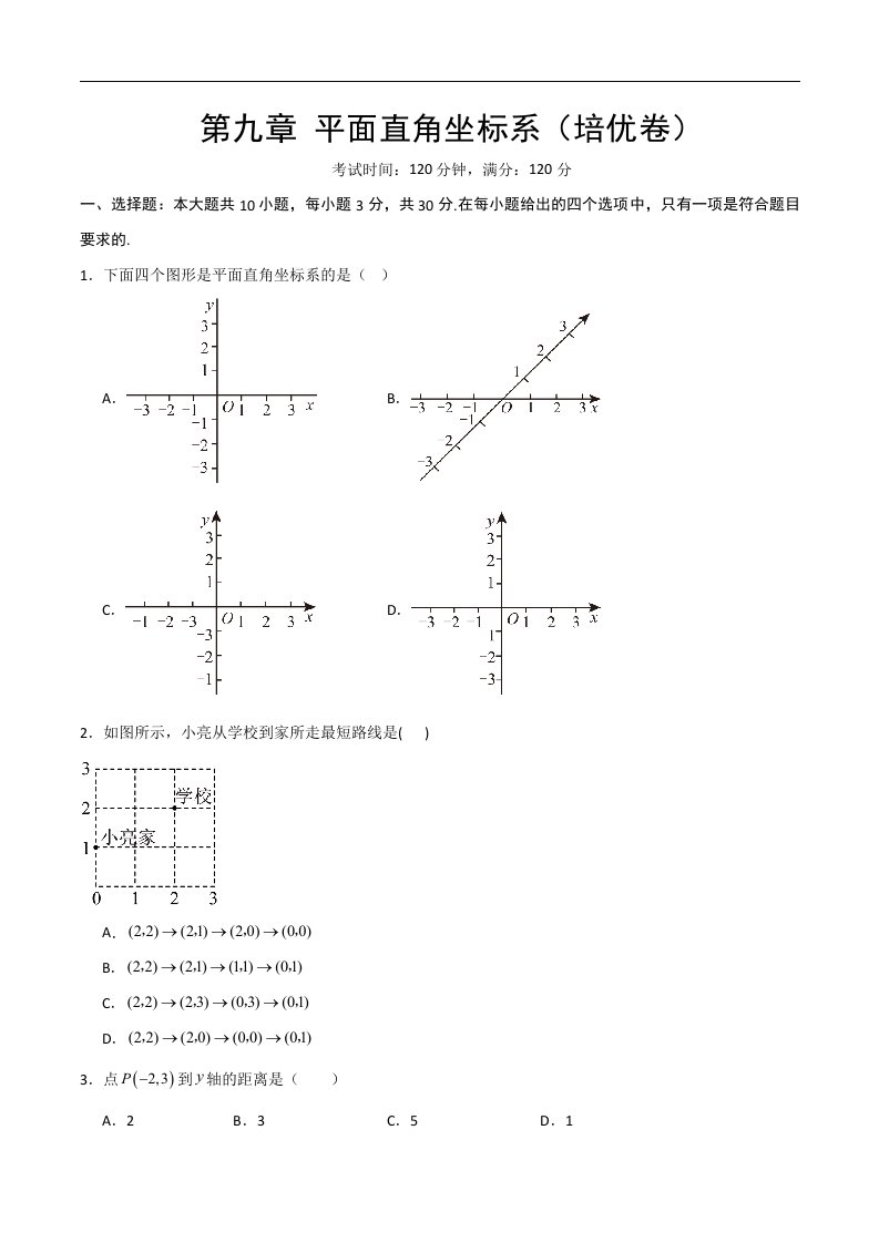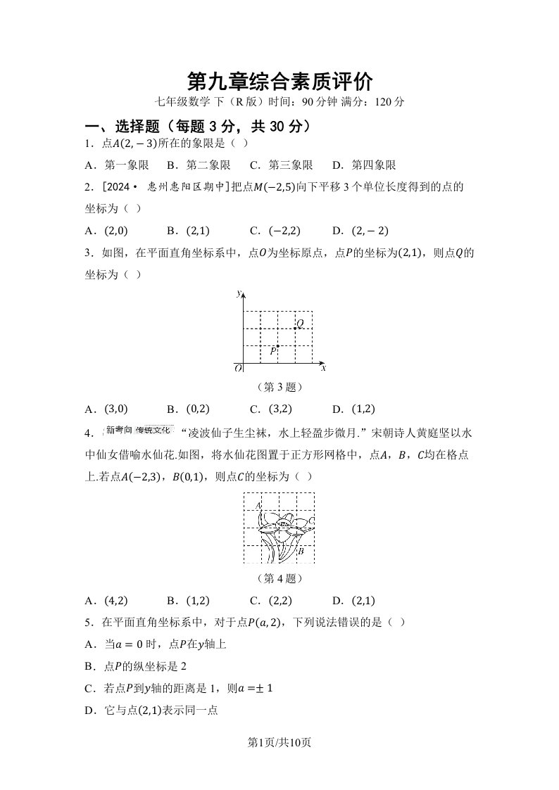 七下数学 第九章 平面直角坐标系(人教版)(含答案)QXSXRJ-0028