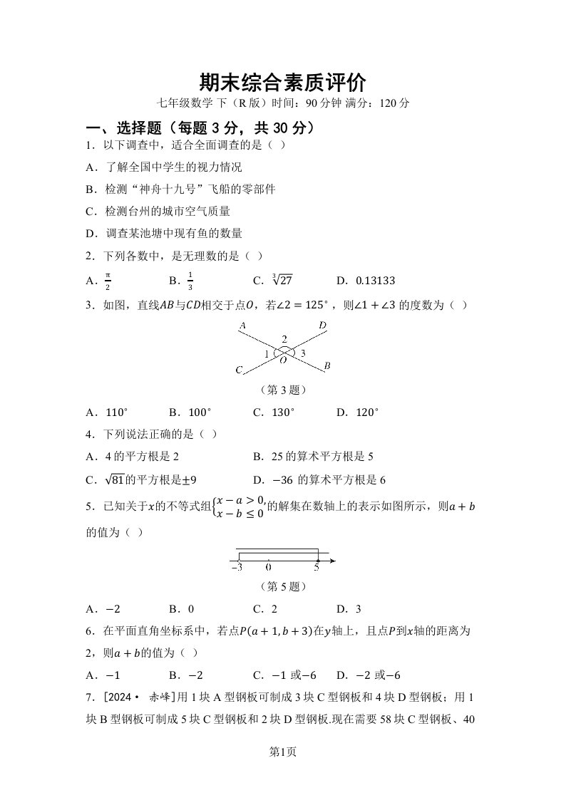 七下数学-期末综合素质评价(含答案)QXSXRJ-0024