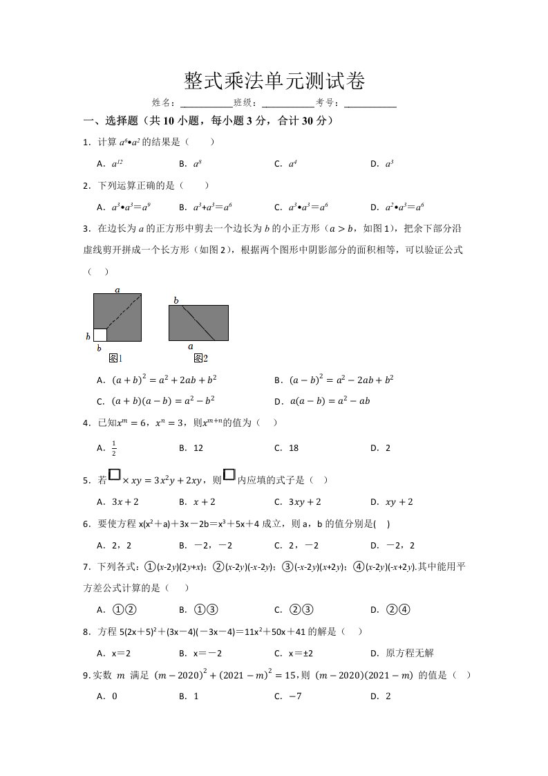 七下数学湘教 第1章 整式的乘法 单元测试卷(含答案)QXSXXJ-0069