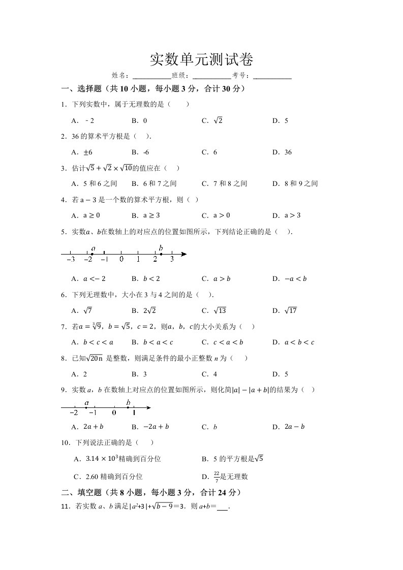 七下数学湘教 第2章 实数单元测试卷(含答案)QXSXXJ-0071