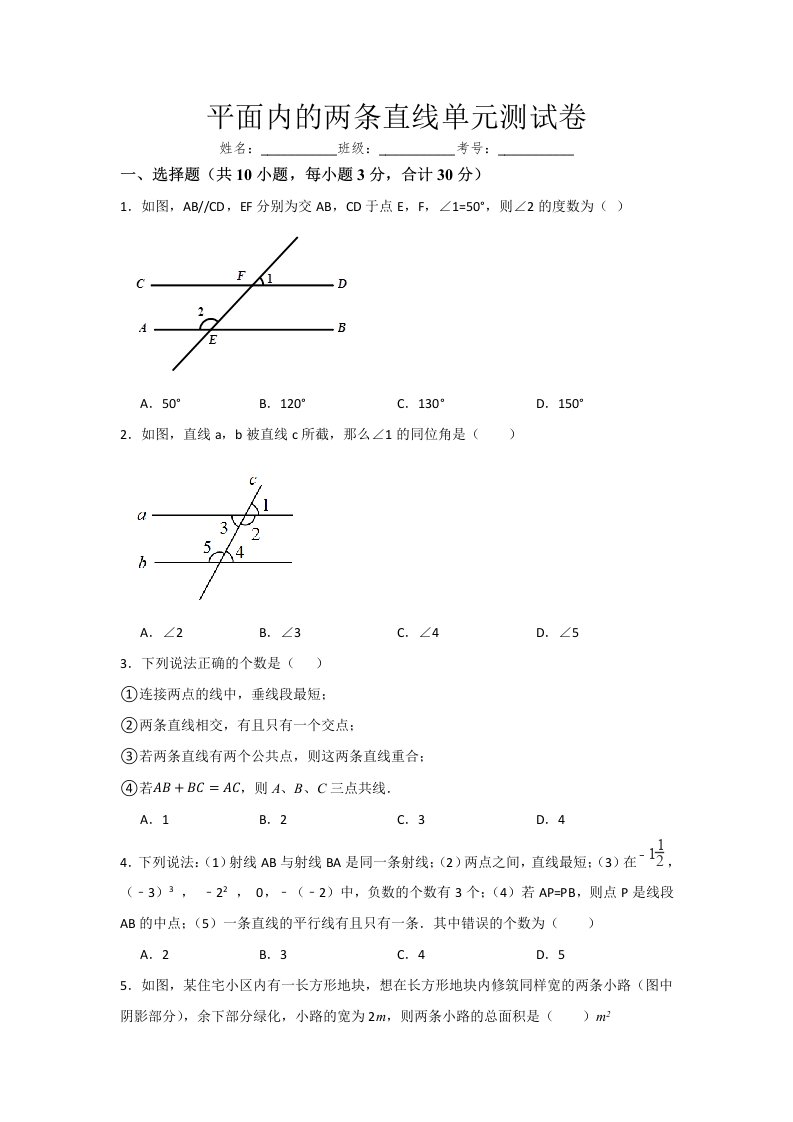 七下数学湘教 第4章 平面内的两条直线 单元测试卷(含答案)QXSXXJ-0075