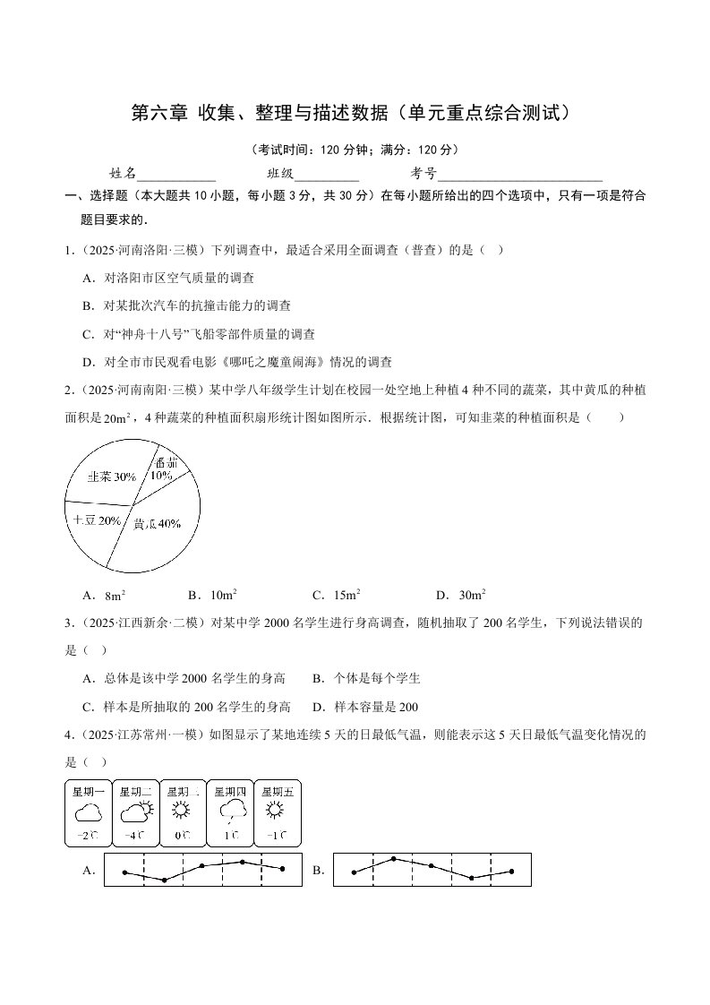 七下数学湘教第6章 收集、整理与描述数据 单元测试卷(含答案)QXSXXJ-0079