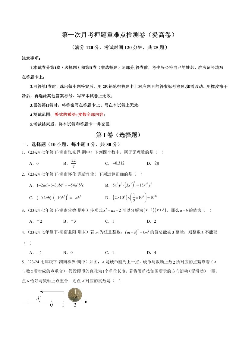 第一次月考押题重难点检测卷(提高卷)(考试范围:整式的乘法+实数全部内容)-(湘教版)(含答案)QXSXXJ-0220